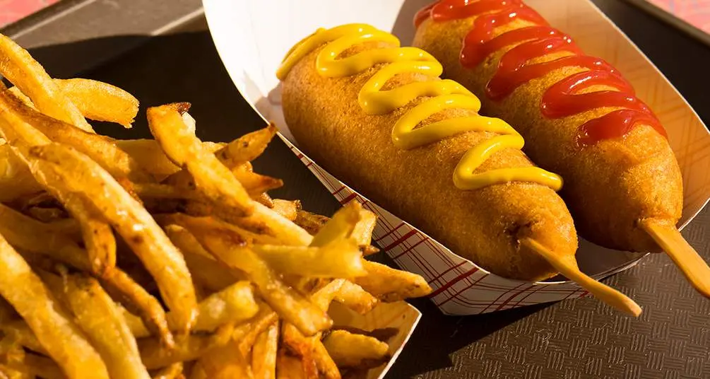 En 1946, Cozy Dog fue el primer lugar en poner perritos de maíz en palitos. Por supuesto, los palitos no son lo único que distingue a Cozy Dogs. También está el rebozado. Es lo que da a los Cozy Dogs su color dorado de hoja en otoño. Y es lo que hace que sepan y se sientan como una hogaza de pan de maíz recién salida del horno en una tarde de otoño.